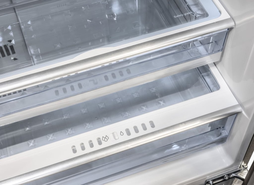 Vnitřek chladničky je rozčleněn na několik zón, které pomáhají udržet potraviny v perfektním stavu. Tři police z bezpečnostního skla nabídnou dostatek místa pro vaše potraviny. Dveře chladničky mají tři police pro snadný přístup ke všemu, co potřebujete.