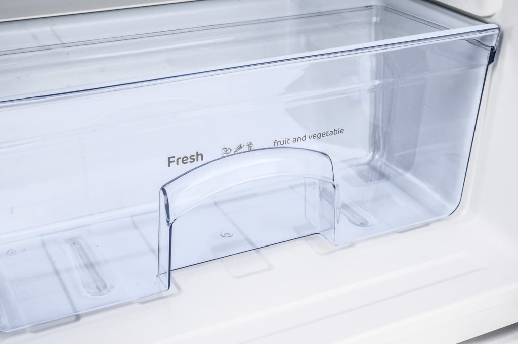 Objem chladící části je 95 l, mrazící pak 14 l. Vnitřní prostor je rozčleněn prostřednictvím výškově nastavitelné poličky z tvrzeného skla a průhledným šuplíkem pro praktické skladování ovoce a zeleniny. Nechybí ani tři přihrádky ve dveřích.