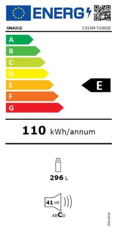 Monoklimatická chladnička, energetická třída E, objem 296 l, spotřeba den/rok: 0,301 kWh / 110 kWh, LED osvětlení, automatické odmrazování chladničky, hlučnost 40 dB, přestavitelné dveře, nastavitelné nožičky, rozměry (V x Š x H): 163 x 60 x 65 cm.
