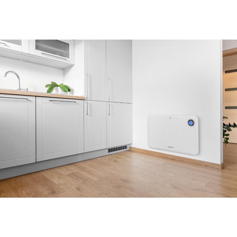 Digitální teplovzdušný konvektor Technologie tichého topení Mobilní zařízení – tento konvektor může být umístěn kdekoli 2 stupně nastavení topného výkonu – 750/1500 W Plynule regulovatelný termostat: 15–35 °C Termostat s detekcí otevřeného okna/dveří