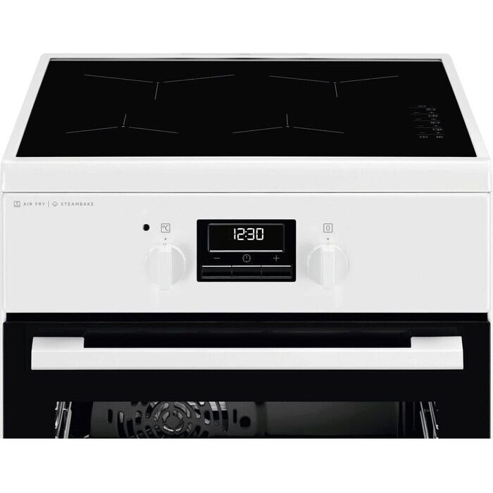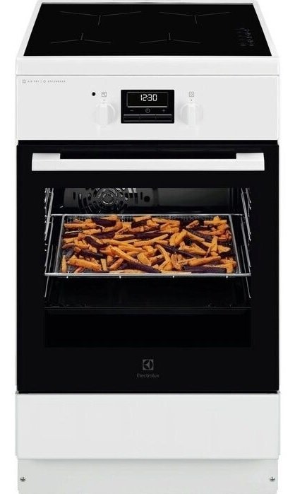 Indukční sporák, energetická třída A, objem 58 l, horkovzdušná trouba s kruhovým topným tělesem, displej, katalytické čištění, funkce SteamBake – pečení s přídavnou párou, funkce AirFry, 11 programů, gril/infragril, časovač, rozměry (V x Š x H): 85,8 x 50 x 60 cm.