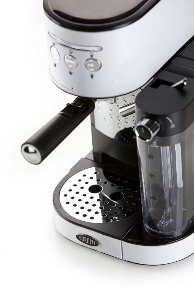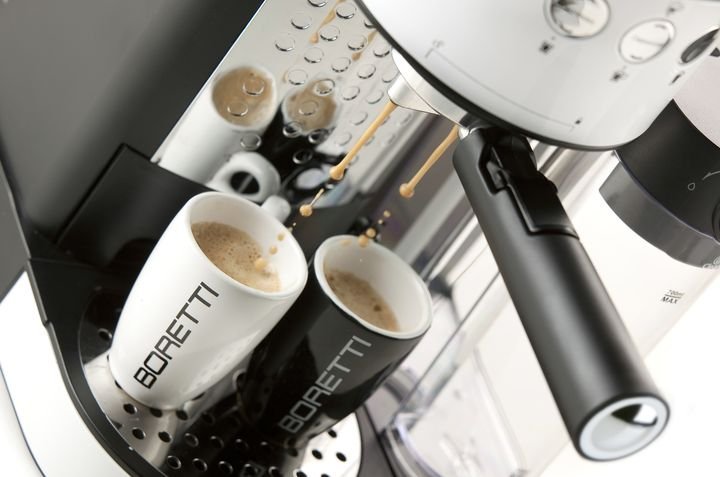 V pákovém kávovaru Boretti můžete snadno připravit 1 až 2 šálky výborné kávy. Jako první si musíte namlít potřebné množství kávy. Nejlepší možností jsou kávomlýnky s mlecími kameny. Namletou kávu pak nasypte do nerezového sítka pro jednu, nebo pro dvě porce kávy a zlehka upěchujte přiloženým pěchovadlem. Nyní již jen zajistíte páku s kávou na svém místě v kávovaru a spustíte příslušným tlačítkem přípravu kávy. Při volbě cappuccina, nebo latte si kávovar sám automaticky nasaje a napění potřebné množství mléka z připojené nádobky.