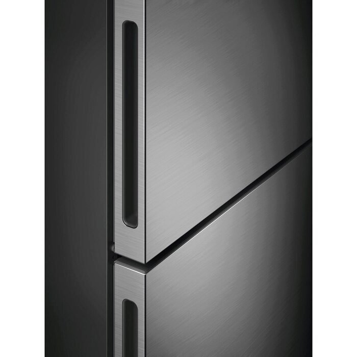 Volně stojící kombinovaná chladnička, barva: nerezová, energetická třída: D, celkový objem: 362 l, technologie: NoFrost, max. hlučnost: 35 dB, rozměry (V x Š x H): 202 x 59,5 x 66,4 cm.