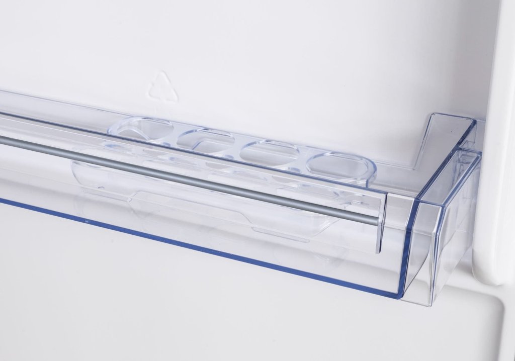 Potraviny můžete umístit do celkem tří polic z bezpečnostního skla, přičemž dvě z nich jsou výškově nastavitelné. Nechybí ani polička na láhve a ve dveřích chladničky najdete celkem tři police. Otevírání lednice zajišťuje integrované madlo.