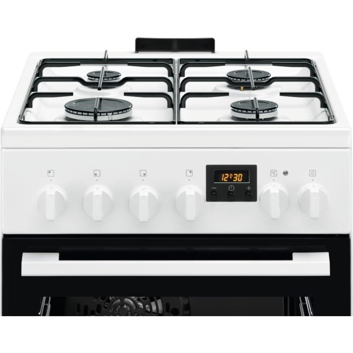 Kombinovaný sporák, energetická třída A, objem 57 l, horkovzdušná trouba s kruhovým topným tělesem, bezpečnostní/drátěné závěsy, displej, hladký smalt, pojistka plynových hořáků, elektrické zapalování integrované v knoflíku, horký vzduch, mechanické – knoflíkové ovládání, gril/infragril, časovač/minutka, připojení 220–240 V, příslušenství: 1x plech na pečení koláčů, 1x plech na zachytávání mastnoty, 1x otočný rošt, rozměry (V x Š x H): 85,5 x 50 x 60 cm.