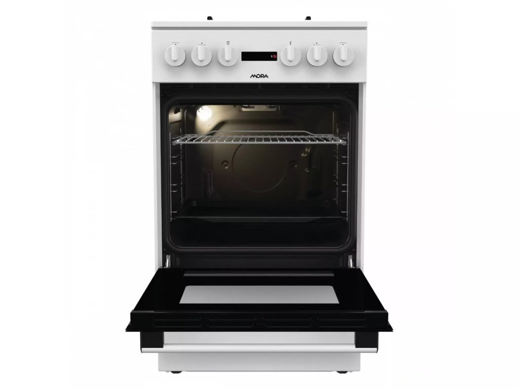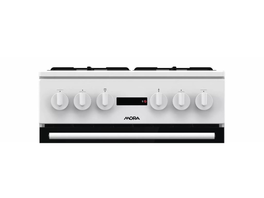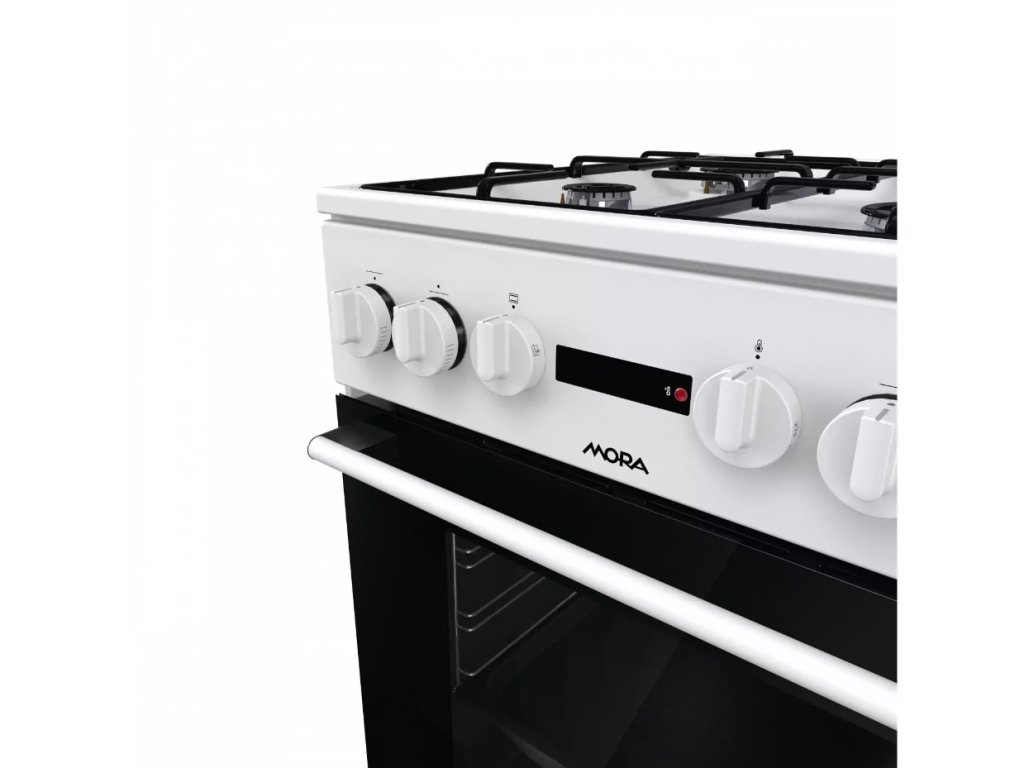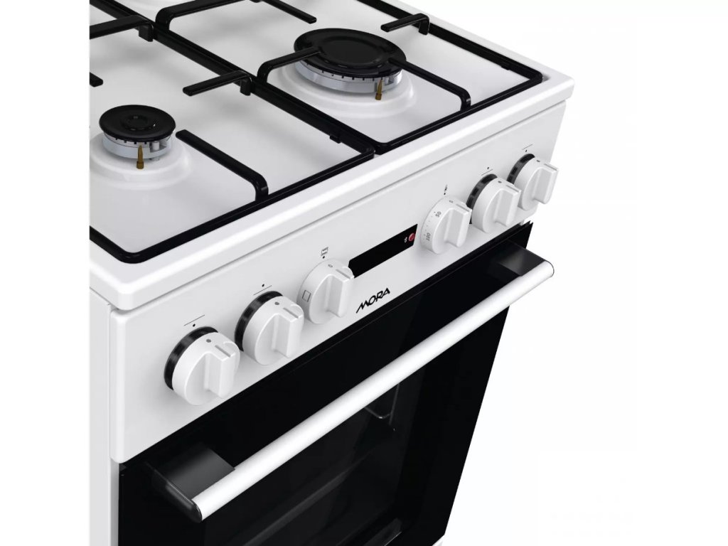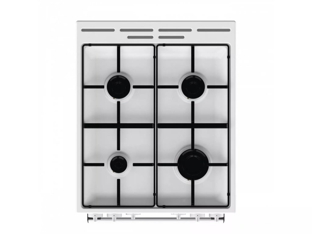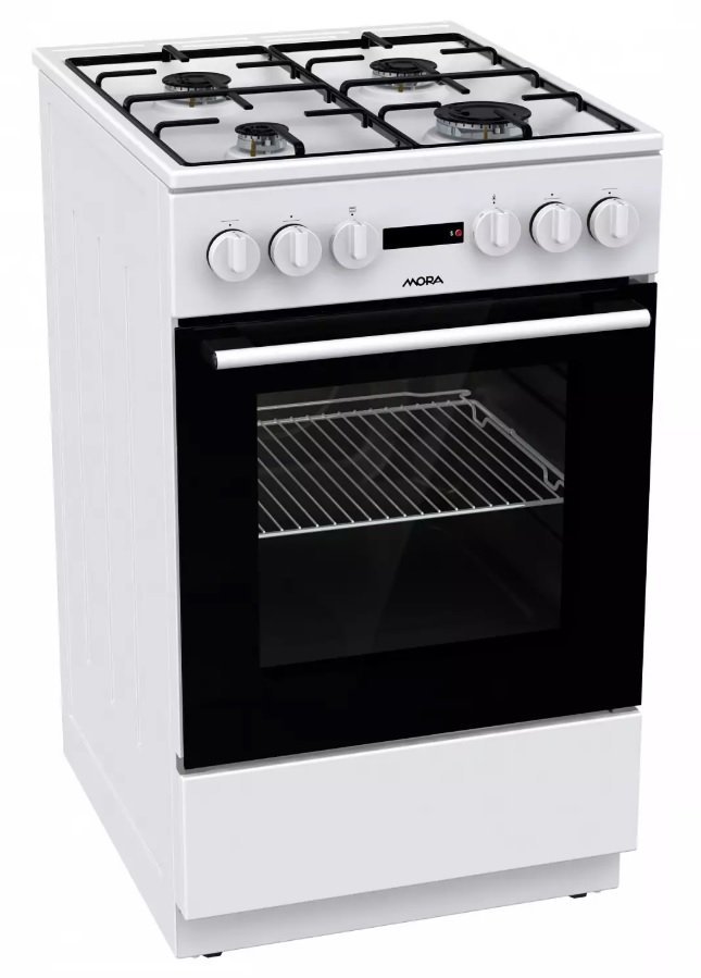 Kombinovaný sporák, energetická třída A, rozměry (V x Š x H): 85 x 50 x 59,4 cm, 4 plotýnky, bezpečnostní pojistka hořáku, ovládání pomocí otočných knoflíků, objem trouby 78 l, EcoClean - čištění párou, programy trouby horní ohřev a spodní ohřev, barva bílá.