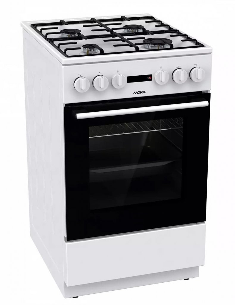 Kombinovaný sporák, energetická třída A, objem 74 l, horní a spodní ohřev, Eco Clean čištění trouby, bezpečnostní prvky: Stop Gas, dětský zámek, chladná dvířka, příslušenství: rošt, XXL hluboký pekáč, V × Š × H: 85 × 50 × 59,4 cm.