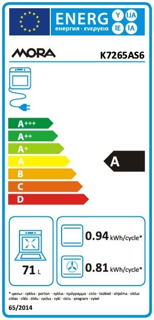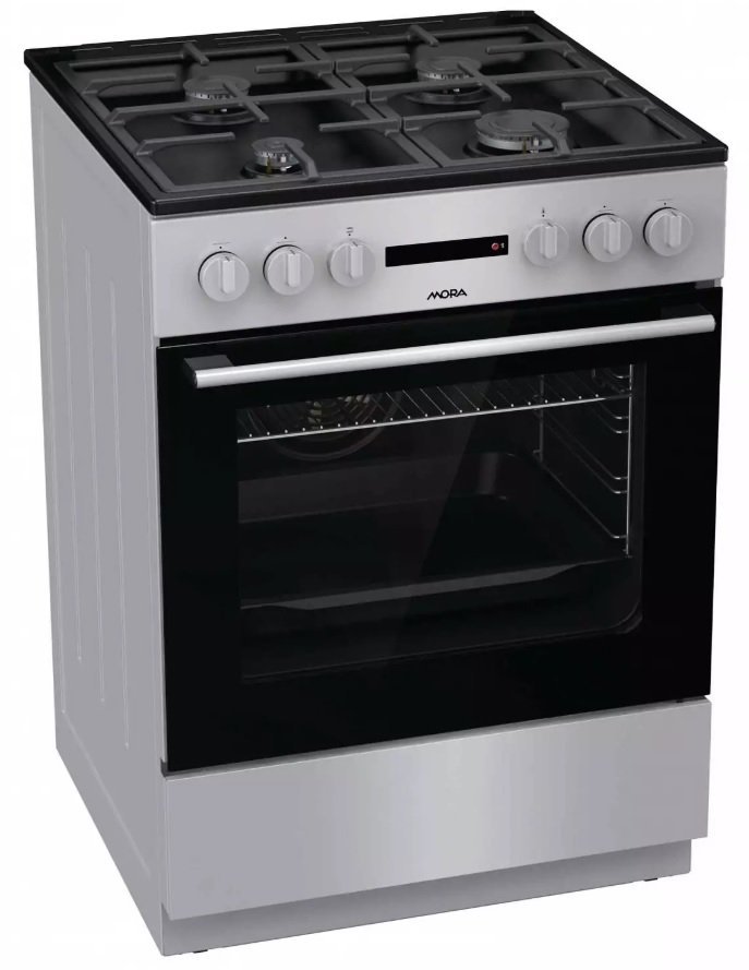 Kombinovaný sporák, energetická třída A, objem 71 l, horkovzdušná trouba s kruhovým tělesem, Eco Clean čištění trouby, 11 přednastavených programů, rychlý předehřev – 200 °C za 5 minut, bezpečnostní prvky: Stop Gas, dětský zámek, chladná dvířka, příslušenství: XXL hluboký pekáč, rošt, rozměry (V x Š x H): 85 x 60 x 60 cm.
