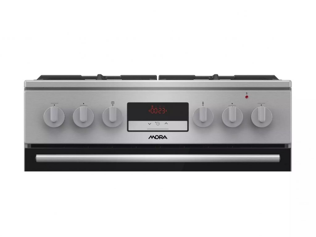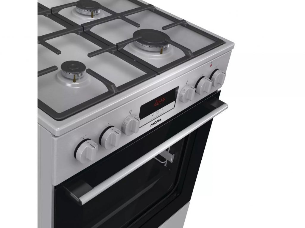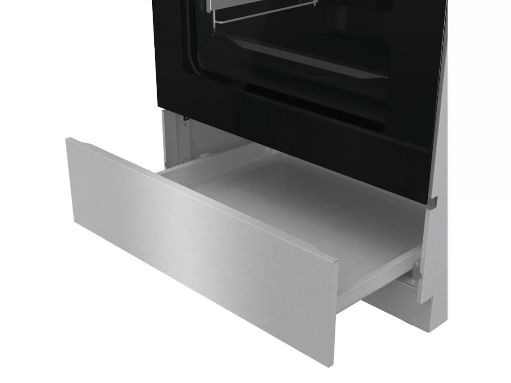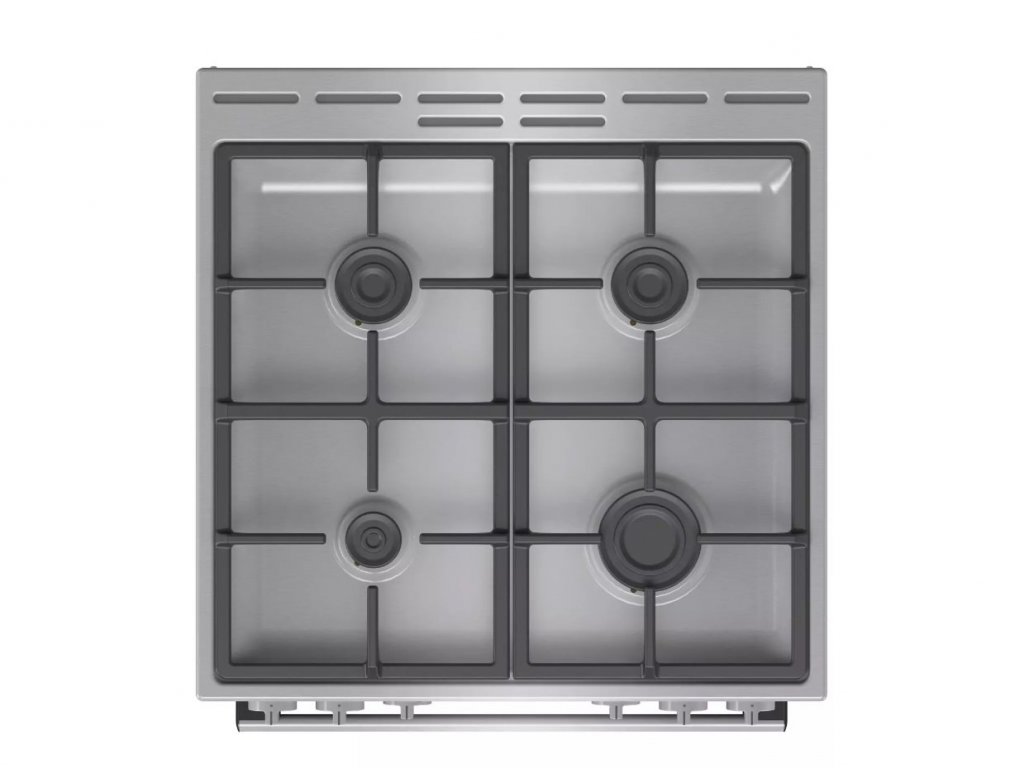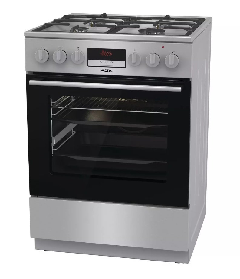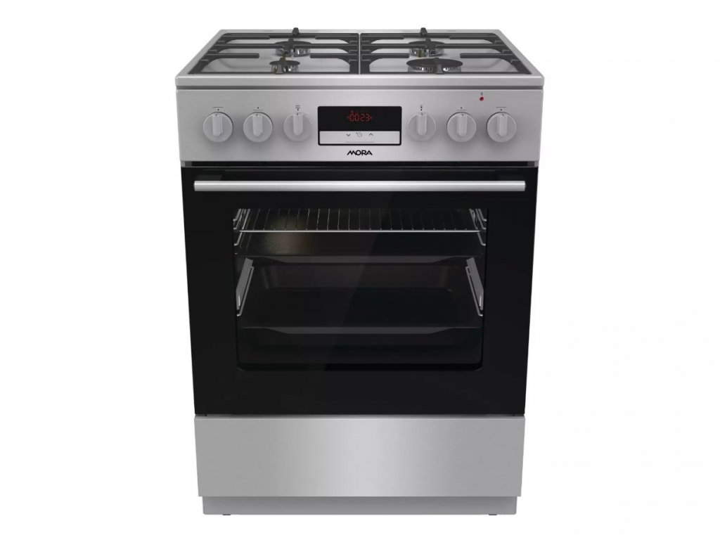 Kombinovaný sporák, energetická třída A, objem 71 l, horkovzdušná trouba s kruhovým tělesem, teleskopické výsuvy, displej, funkce Eco Clean – čištění trouby, funkce rychlého předehřevu trouby, bezpečnostní prvky: Stop Gas, chladná dvířka, příslušenství: mělký plech, XXL hluboký pekáč, rošt, V × Š × H: 85 × 60 × 60 cm.