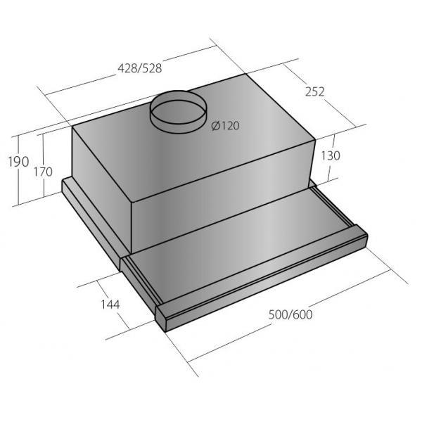 Výsuvný odsavač par s možností recirkulace, výkon odtahu: 152 m3/h, počet rychlostí: 3.