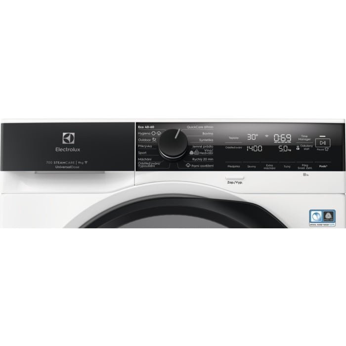 Prací programy: QuickCare 69 min., bavlna , syntetika, jemné prádlo, vlna/hedvábí, rychlý 20 minut, pára - osvěžení , odstřeď./vypouštění, máchání , Sportwear, přikrývka, outdoor, Hygiena, Eco 40-60