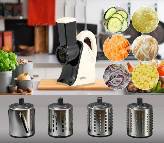 - součástí balení 4 nástavce - struhadla: na plátky - kolečka, hranolky, na jemno, na hrubo