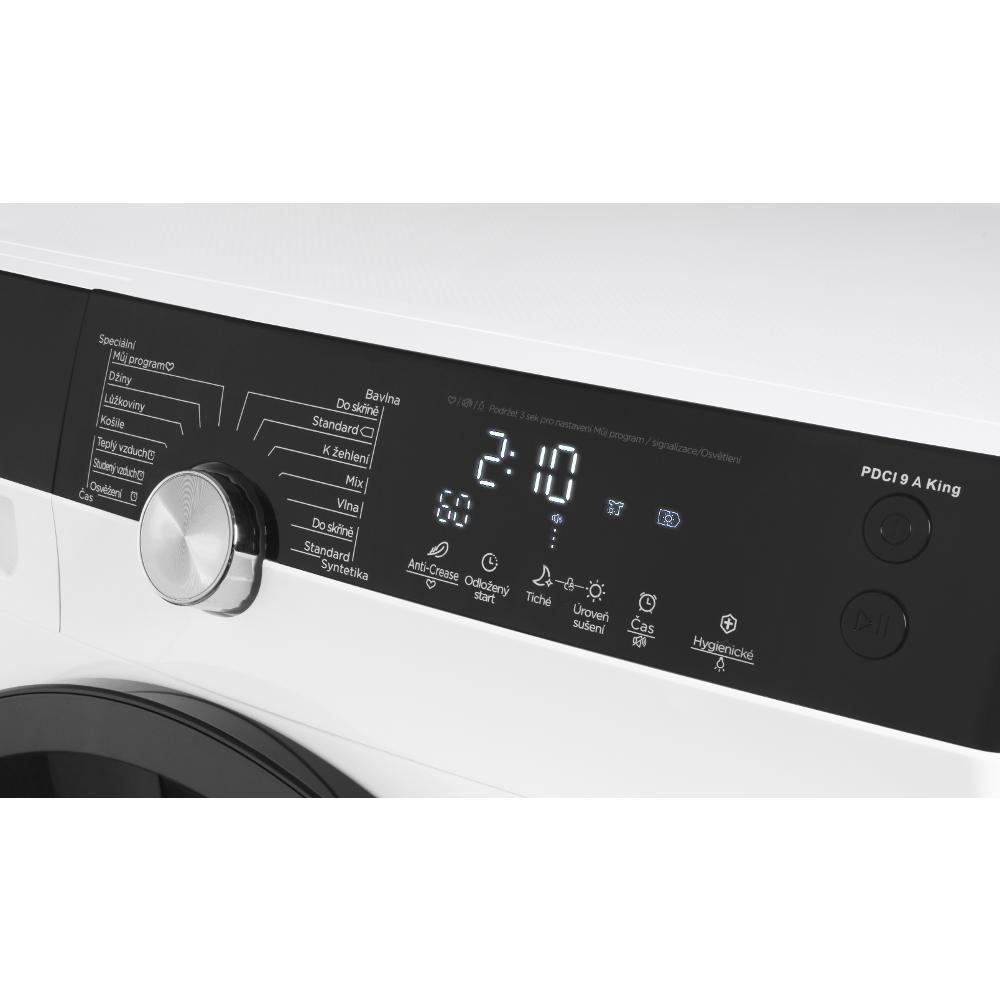Sušička prádla, energetická třída C, tepelné čerpadlo, invertovový motor, náplň prádla 9 kg, hlučnost 65 db, 14 programů, crystal buben, můj program, nastavitelná úroveň sušení, funkce Extra hygiena, rozměry (V x Š x H): 84,5 x 59,5 x 67,5 cm.