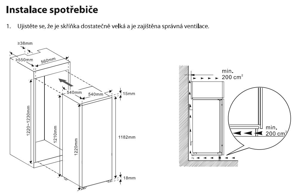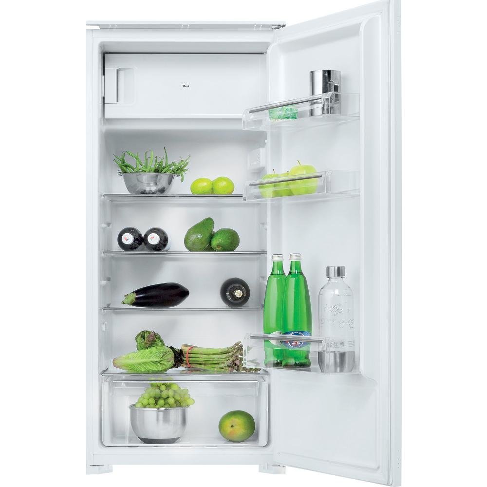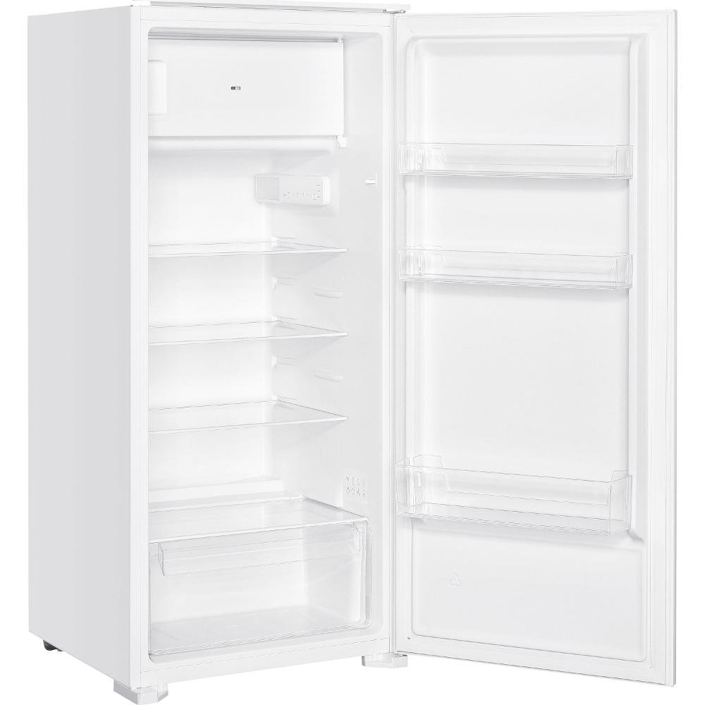 Vestavná jednodveřová chladnička, energetická třída E, objem chladničky 167 l, objem mrazničky 14 l, hlučnost 35 dB, roční spotřeba energie 146 kWh, počet polic 4, skleněné police, klimatická třída N, ST, rozměry (V x Š x H): 122 x 54 x 54 cm