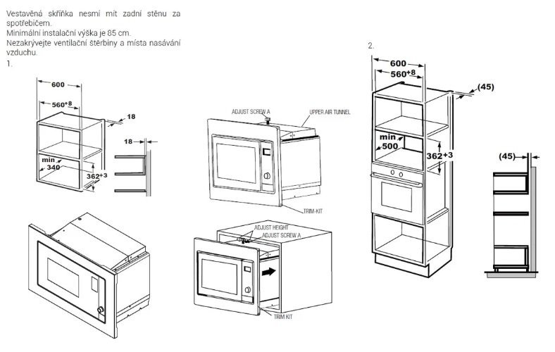 Vestavná mikrovlnná trouba, dotykové elektronické ovládání, 8 programů, objem 20 l, průměr otočného talíře 24,5 cm, 5 stupňů výkonu, displej, funkce rozmrazování – zajistí rovnoměrné rozmrazování bez zadržování vody v potravinách, funkce vaření ve více krocích – rozmrazení a ohřev jídla bez přerušování a nastavování, časovač, dětská pojistka, výkon 800 W, rozměry (V x Š x H): 29 x 46,1 x 37,5 cm.
