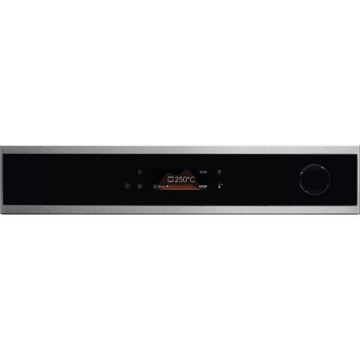 - Možnost elektronického nastavení trouby: použití zbytkového tepla, info k servisu, vypnutí denního času při vypnuté troubě, hlavní vypínač, denní paměť 3 dny zpětně, minutka, Oven light on/off selectable (menu direct access button), ukazatel teploty (°C), ukazatel zbytkového tepla, doporučená teplota, denní čas, nastavení jasu disp., TFT plnobarevný dislplej s dotykovým ovládáním, elektronická regulace teploty, Electronical door switch, výběr rychlého předehřátí, jídelní sonda, automatické vypnutí jídelní sondy, jídelní sonda - indikace teploty jádra, Food sensor end action adjustable, jídelní sonda s odhadem času, Function lock (in running mode), tóny kláves, alarmů a chyb, aktivace/deaktivace (kromě hlavního vypínače), 31 Languages/Text display, akustický signál, automatické vypnutí (jen trouby), nastavení hlasitosti minutky, Prověření výsledku/Prodloužení času (Finish Assist podle zbývajících 10 % doby trvání), Dětský zámek, Standby verze, čas vaření, čas vaření s odhadem konce, přičítání času, Odložený start, demo program s kódem, 167 Variety of pre-set cooking programmes 'Assist', 3 oblíbené programy