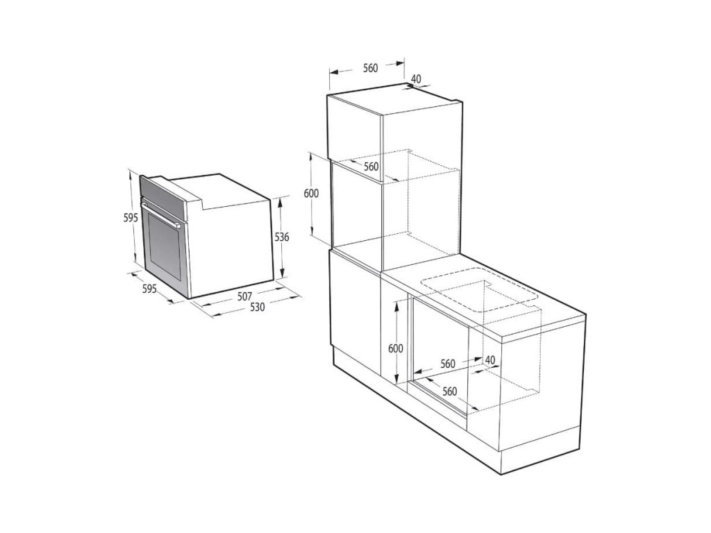 Vestavná trouba, energetická třída A, objem trouby 64 l, počet funkcí 4, možnost regulace teploty 50-250 °C, osvětlení trouby, příslušenství: 1x mělký plech, 1x rošt, příkon 2 200 W.