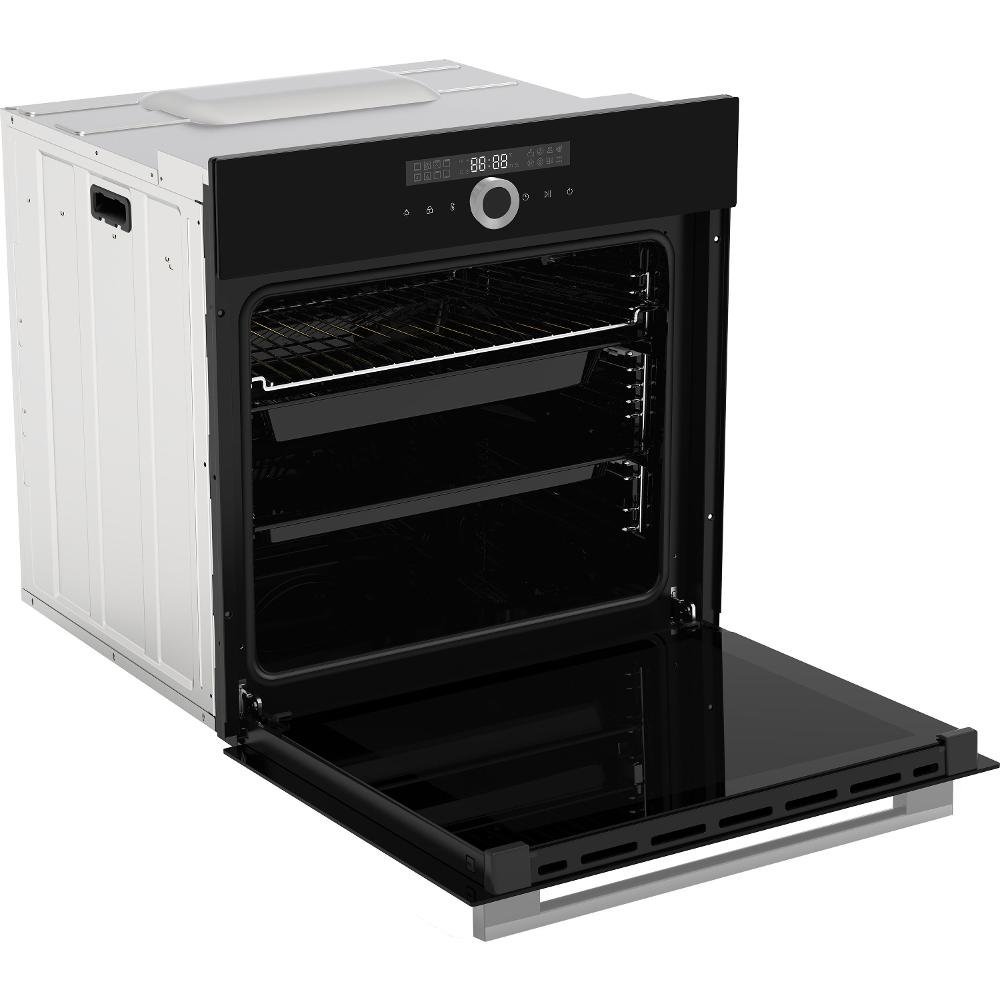 Vestavná trouba, energetická třída A, provedení samostatná, objem 76 l, počet funkcí 14, gril, ventilátor, horký vzduch, displej, minutka, čištění trouby pára, rozměry (V x Š x H): 59,5 x 59,5 x 57 cm, barva černá.