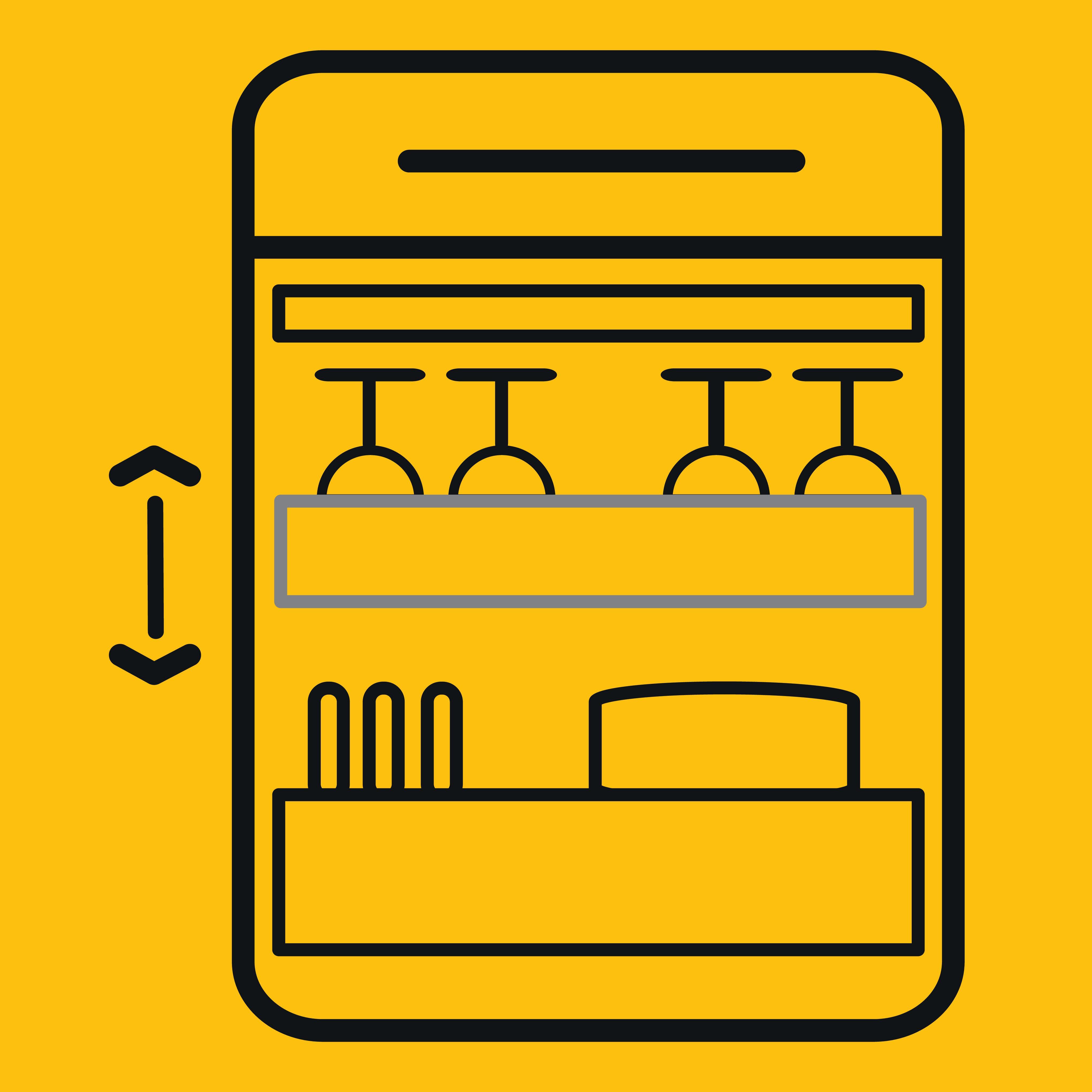 Nastavitelnost horního košeNastavitelný horní koš vaší myčky nádobí vám umožní v případě potřeby vytvořit větší prostor a také bez námahy umístit neobvykle tvarované předměty.