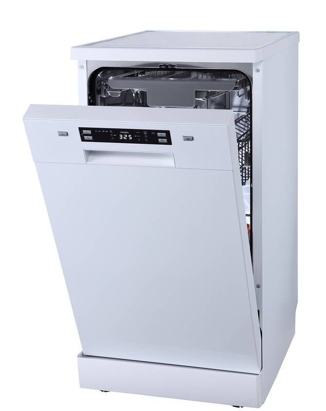 Myčka nádobí, šířka 45 cm, příborová zásuvka, 11 sad nádobí, energetická třída D, hlučnost 45 dB, automatické otevírání dvířek, AUTO program – program, který se zcela přizpůsobí, speciální program na sklo, samočisticí filtr s automatickou prevencí proti ucpání, bezpečnostní prvky - ochrana proti úniku vody, dětská pojistka, V × Š × H: 84,5 × 44,8 × 60 cm.