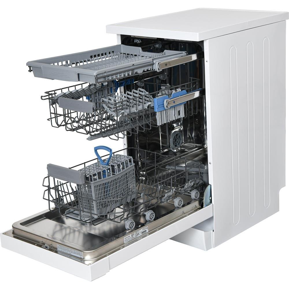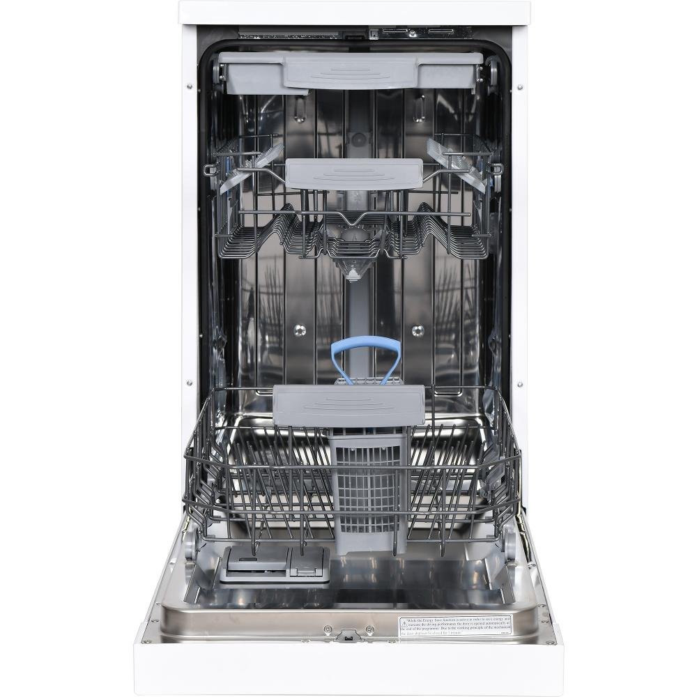 Volně stojící myčka, na 10 sad nádobí, energetická třída D, 6 programů, 4 teploty, spotřeba vody 9 l, hlučnost 45 db, TurboSušení, automatické otevírání dveří, aquastop, výškově stavitelný 2. koš, rozměry (V x Š x H): 85 x 44,8 x 59,8 cm.