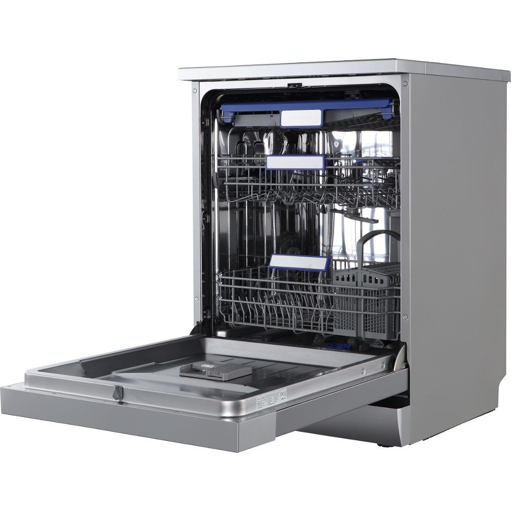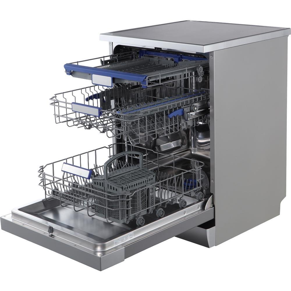 Volně stojící myčka, kapacita 14 sad, energetická třída D, hlučnost 44 dB, počet programů 8, spotřeba vody 10 l, automatické otevírání dveří, 3D příborová zásuvka, výškově stavitelný 2. koš, zónové mytí, rozměry (V x Š x H): 84,5 x 59,8 x 61 cm.